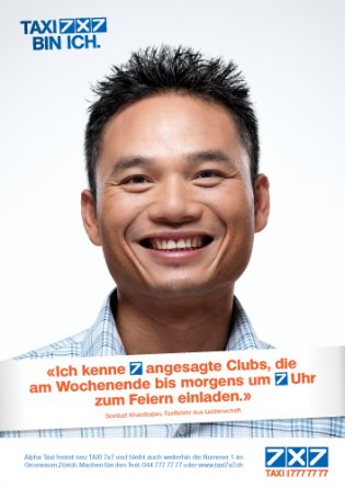 Durch die Umbenennung wurde die Marke einem umfassenden Redesign unterzogen. Die Kommunikation der grössten Taxiflotte im Grossraum Zürich rückt die Taxifahrer, welche 7x7 Taxi verkörpern und dem Unternehmen ein Gesicht geben, ins Zentrum. Die Botschaft «7x7 Taxi bin ich» dramatisiert die Leidenschaft, mit der die Taxifahrer unterwegs sind und unterstreicht zudem ihre Ortskundigkeit und Professionalität.