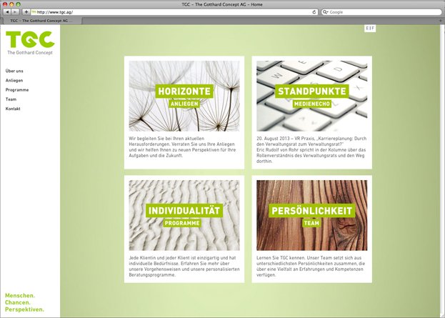 TGC begleitet und unterstützt Menschen bei beruflichen Veränderungen. Unter dem Leitgedanken «neue Perspektiven» entstand so das neue Corporate Identity. Im Zuge des Redesign kreierten wir auch den neuen Claim «Menschen. Chancen. Perspektiven.»